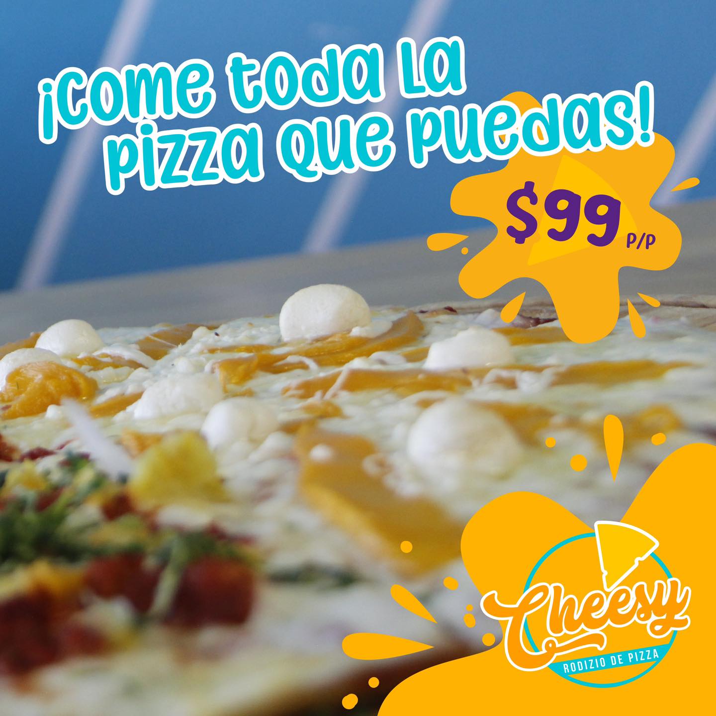 El rodizio (buffet servido en la mesa) para adultos incluye toda la pizza que puedas comer y contamos con más de 15 sabores, salados y dulces, todos incluídos en el menú. El costo normal es de $129 por persona y actualmente tenemos la promocion por $99 por persona.
